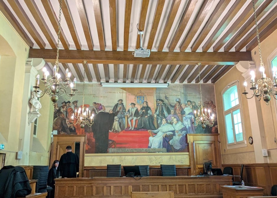 Pour la cohésion d’équipe (et parce que nous ne savons apparemment pas faire autre chose que d’aller à des procès), nous avons assisté durant une après-midi au procès de Nicolas Sarkozy concernant les financements lybiens ! Nous aurions aimé pouvoir prendre des photos de la salle d’audience, tellement elle était grandiose ! Peintures au plafond, moulures dorées et lustres immenses, ça change des salles d’audience où les militant⋅es sont habituellement jugé⋅es !