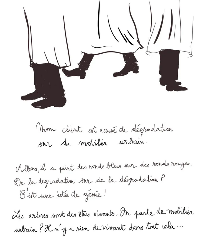 Entre mars et avril, nos scribes, et illustrateur⋅ices se sont également rendu⋅es à Mulhouse, à Nantes, à Castres, à Lyon, à Versailles et à Périgueux pour des procès. Au total, nous avons couvert 12 procès !